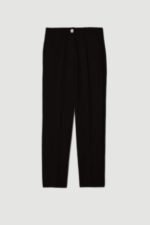Kadın Alt Giyim : Siyah Düz Renk Keten, Kumaş Pantolon